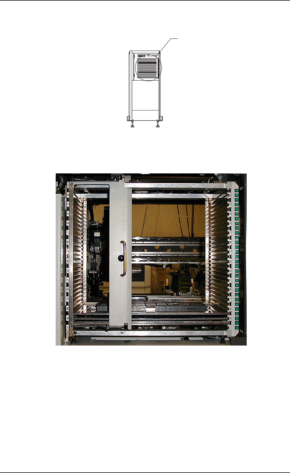 (4) トラバース上のトレイは、エレベータ内に収納され、次のトレ