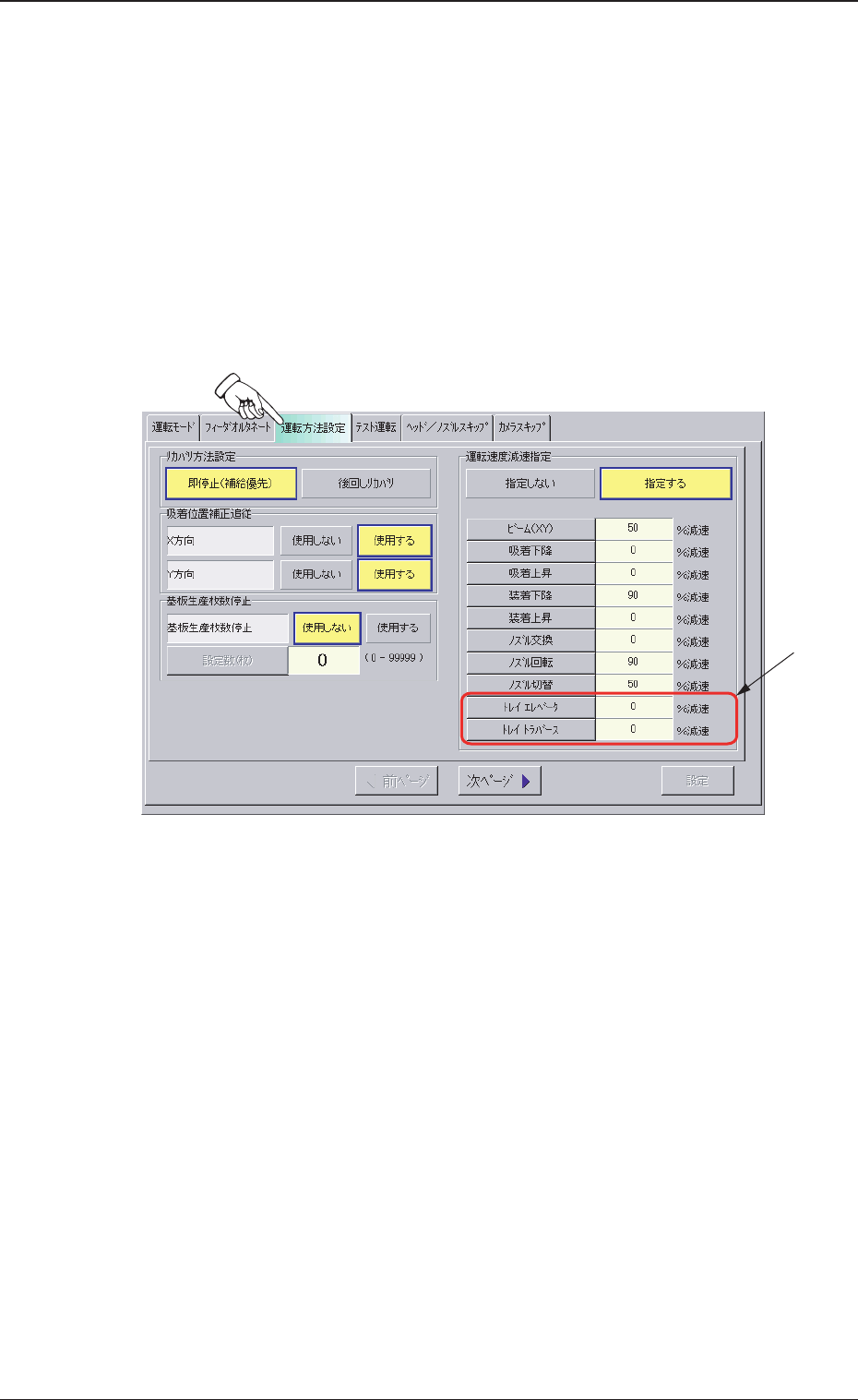ますので、トレイエレベータの減速割合を設定します。