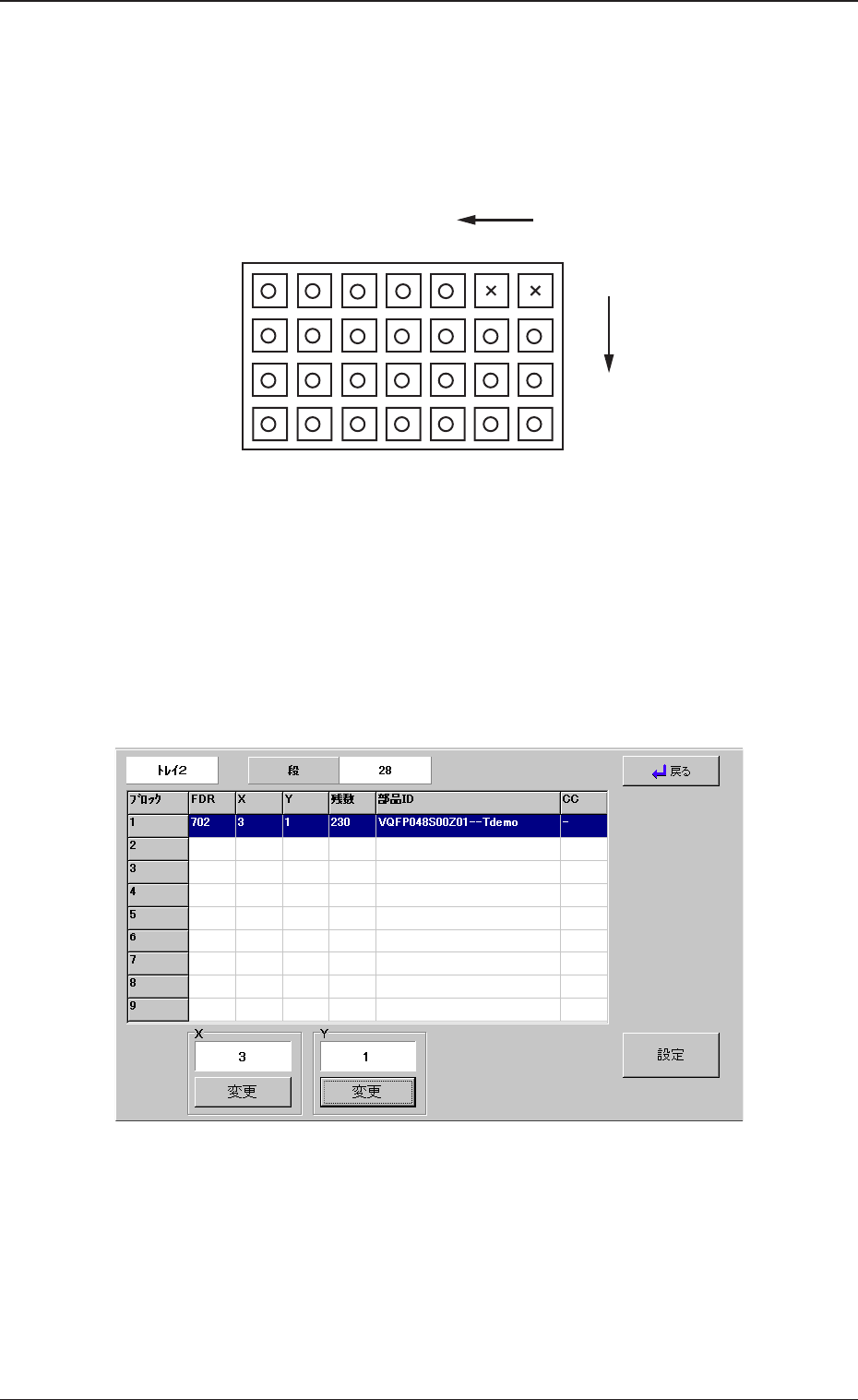 Tg0531-PM-SO *3 *3 *3 *3 *3 部品情報 部品情報 部品情報 部品情報 部品情報 段ごと、ブロックごとの部品情報が表示されます。 赤色 赤色 赤色 赤色 赤色 ( ( ( ( ( 点灯 点灯 点灯 点灯 点灯 ) ) ) ) ) : : : : : 部品切れ段を示します。 複数ブロック指定がある場合、1 ブロックでも 部品切れが発生したトレイがある場合には、赤 色点灯となります。 赤色 赤色 赤色 赤色 赤色 (…
