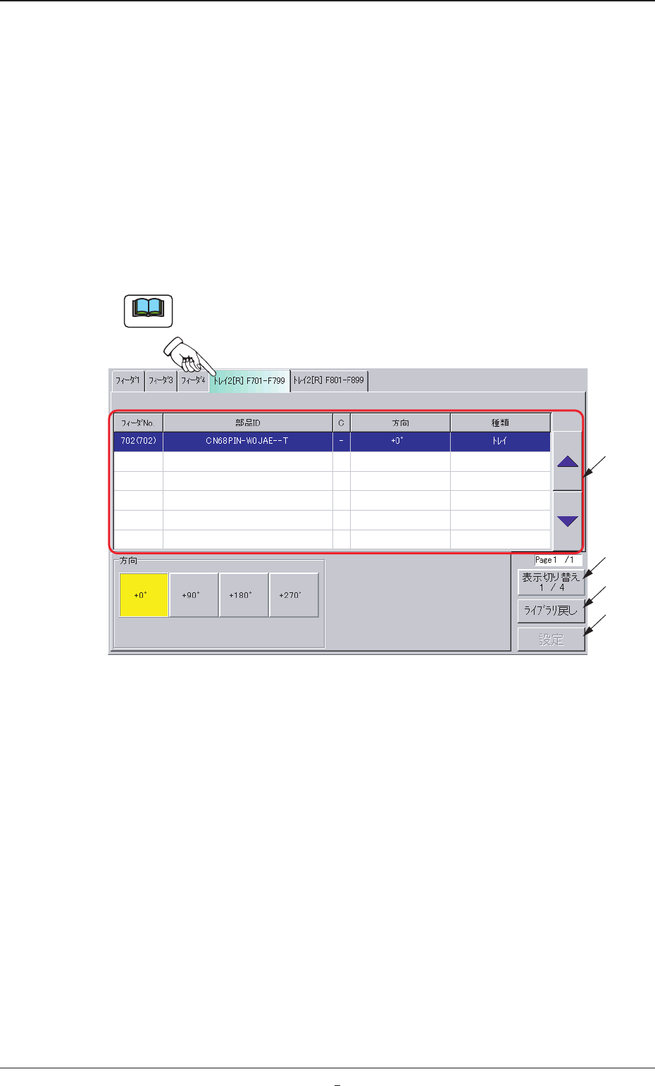 登録部品が 1 ページ分以上ある場合は、右側の矢印ボタンを押