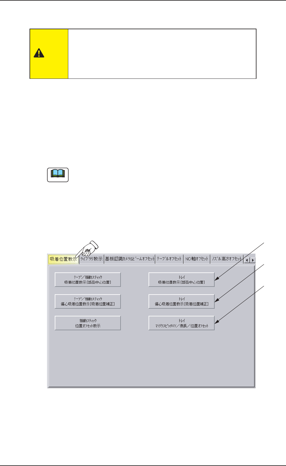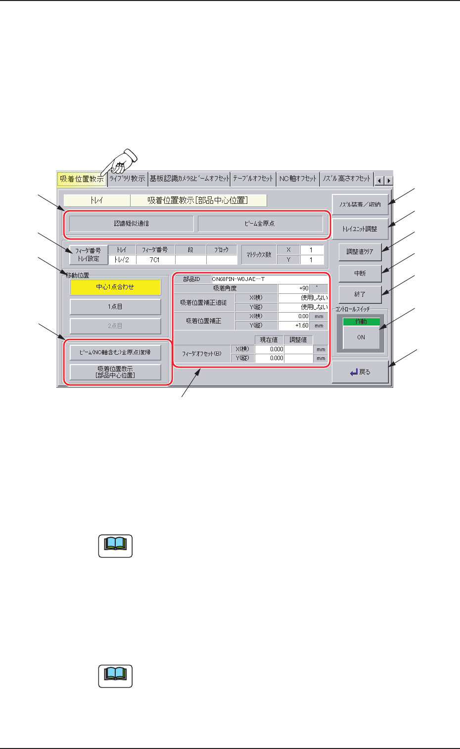 “5.3.4 トレイ偏心吸着位置教示[吸着位置補正]画面”を参照し