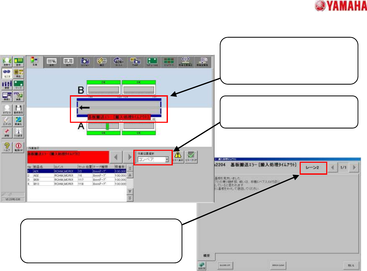 ジは、エラーメッセージの右上にコンベアレーン番号を表示