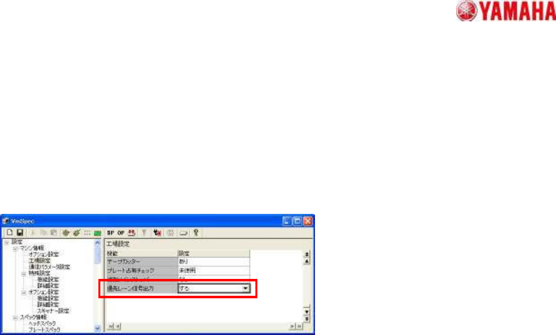 • マシン設定→工場設定→「優先レーン信号出力」項目を「する」に設定する。