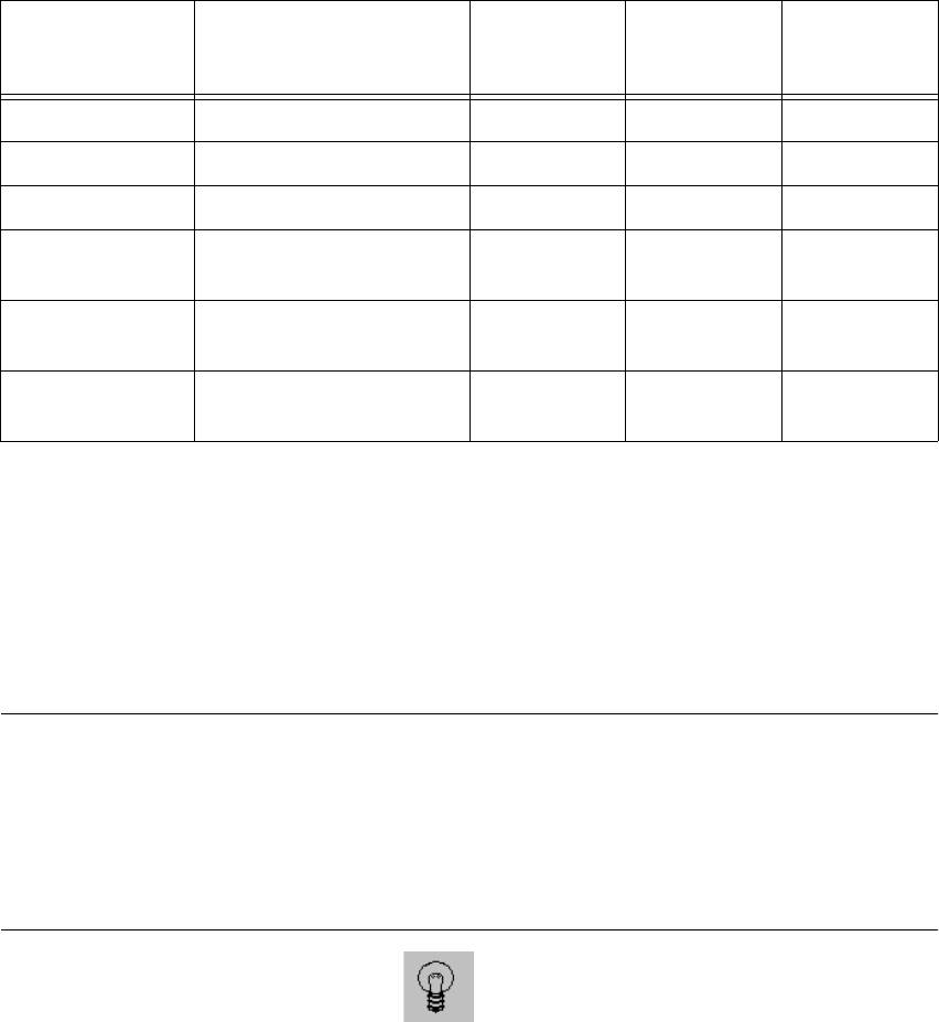 The following table is derived from empirical values and is therefore only to serve as an orienta-