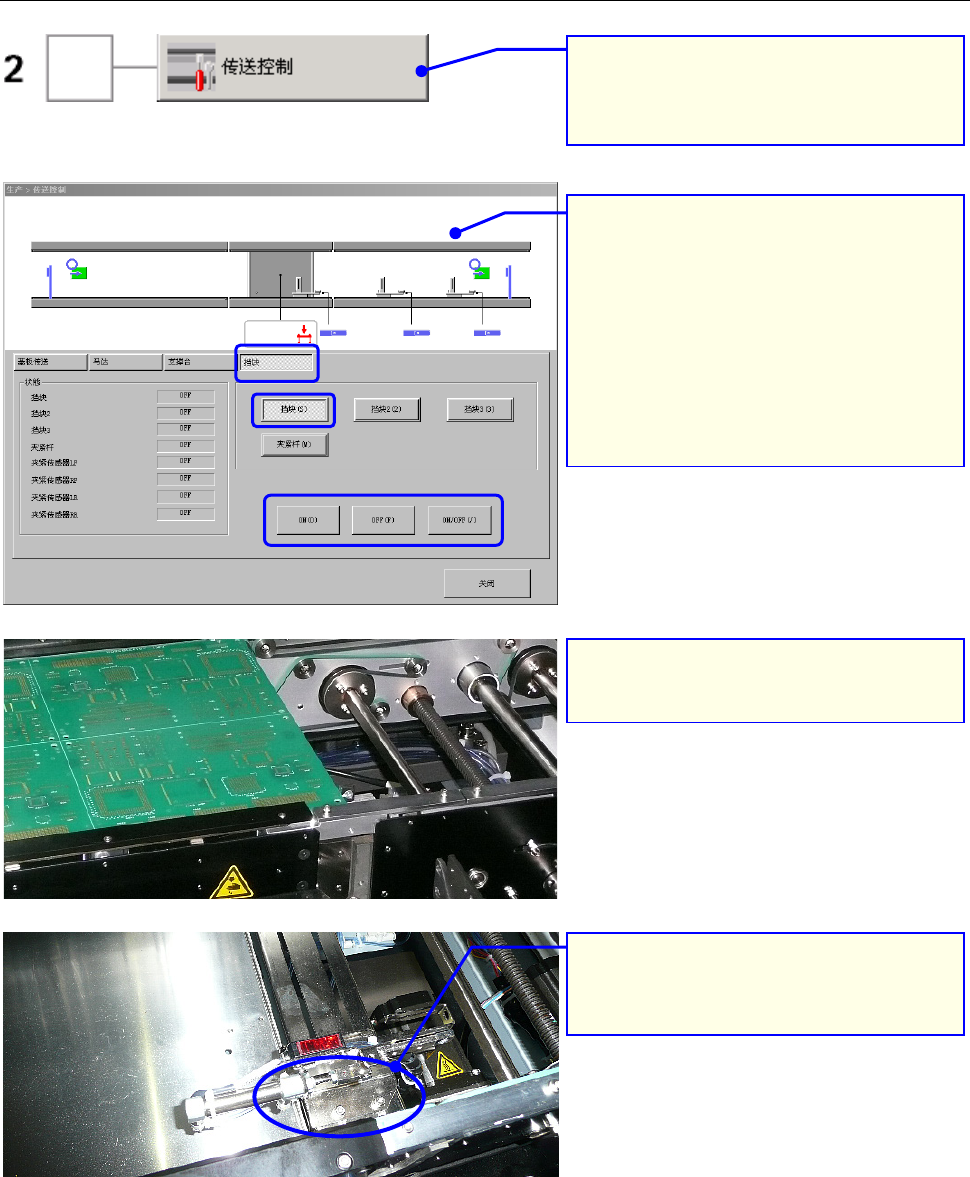 把挡块[ON],用手把基板对准挡块,确