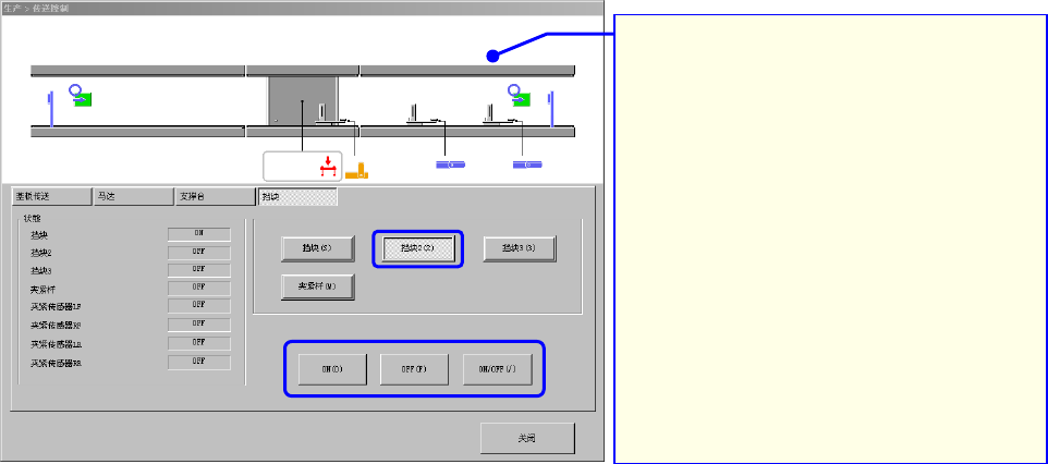 ②按一下[ON]、或[ON/OFF],挡块即会