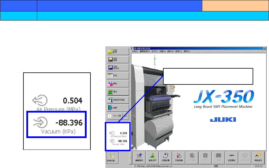 检查真空压时,点击画面左下部(蓝框)区域,即显示当前压力。