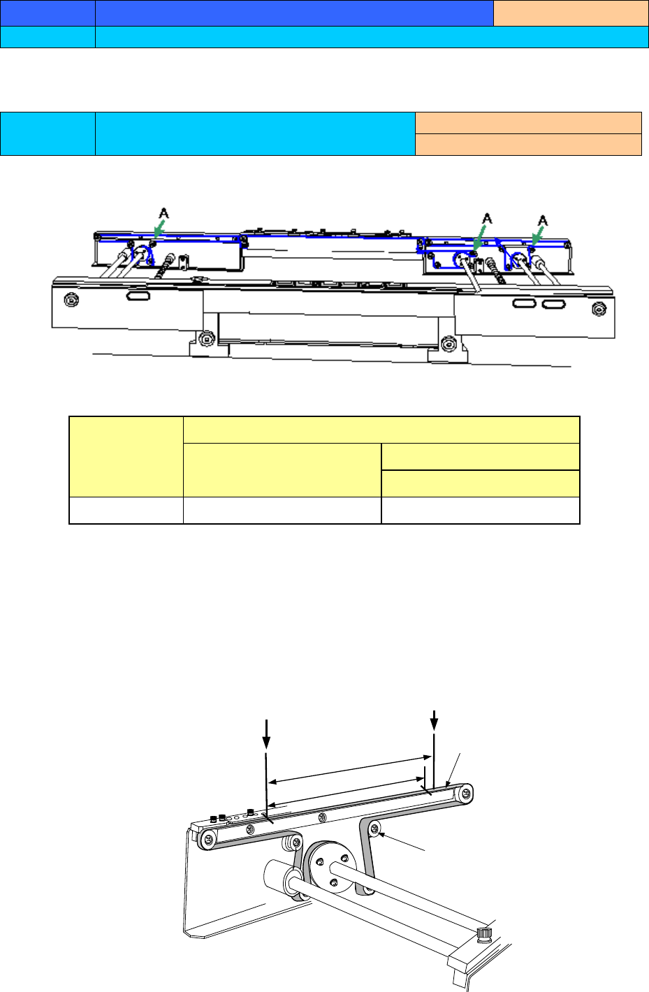 ② 按照与1)逆向步骤,转动「A部」的「传送滑轮」,撑紧传送带张力,在2处标记的间距达到201mm