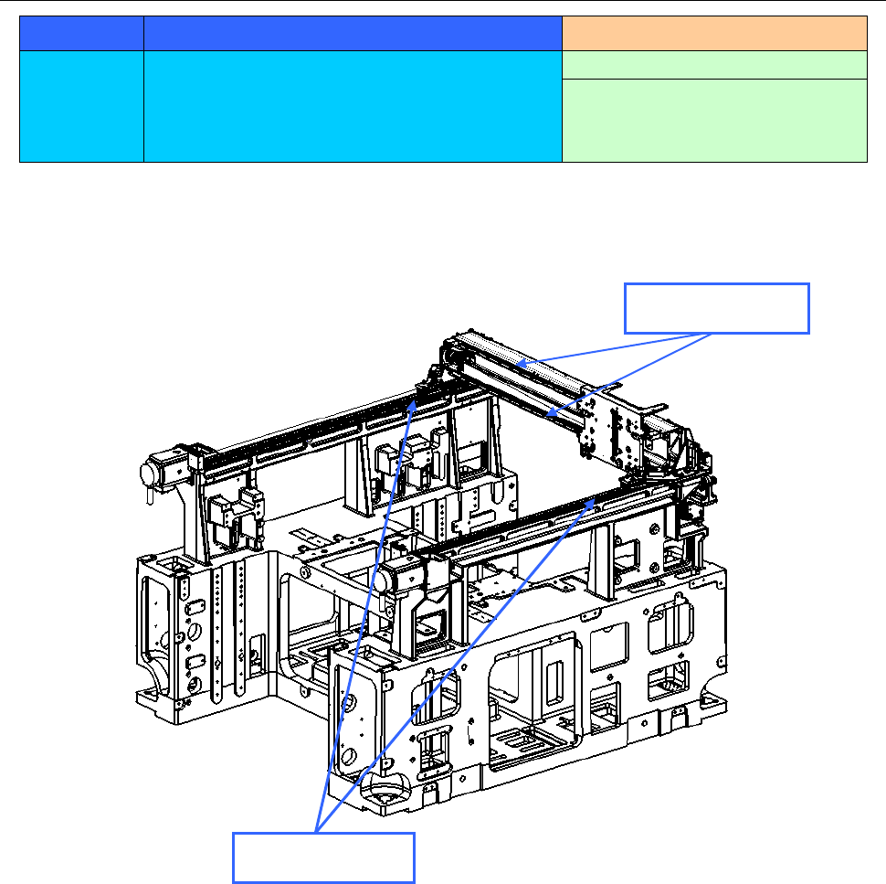 1)用棉纱布、柔软的布等,擦掉 X 轴普拉轨道安装的 CB(电缆套 CABLE VEYOR)支撑座内侧部分