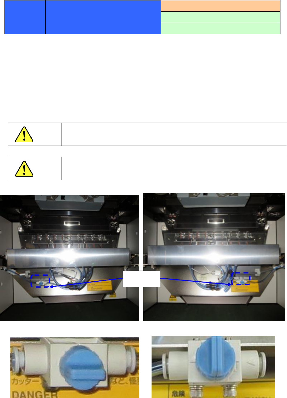 切割刀可能会发生异常动作,润滑时请关闭空气阀再进行作业。