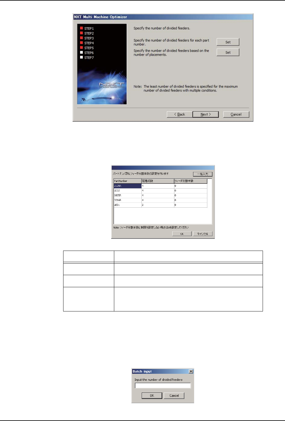 a. 单击 [Specify the number of divided feeders for each part number] 的 [Set]
