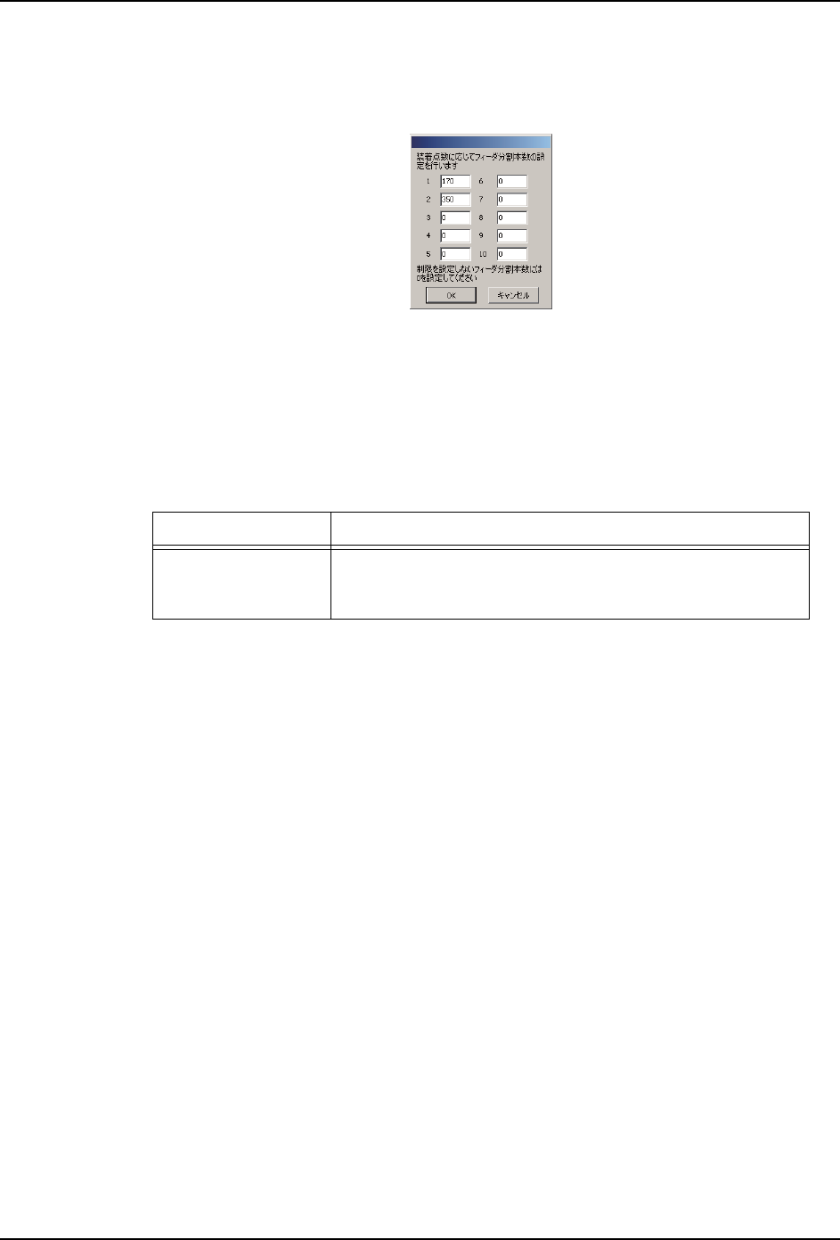 · 请将要设定限制供料器分割数量的贴装点数在要限制的数量的地方输入 "0"。