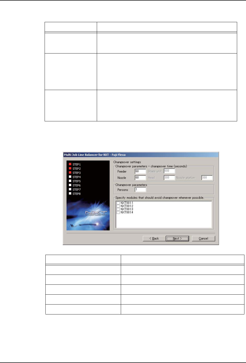 2. Job 编制器 PRG-NXTS-004S0 148 NXT 系列 编程手册 19.请在 [ Ch angeover paramete rs ] Groupbox 中输 入参数值 。 20.在 [Specify modules that should avoid changeover whenever possible] 框中选 择合 适的模组。该选项只在已经指定了 以下两项设置的情况下启用。 ·Feeder allocation…
