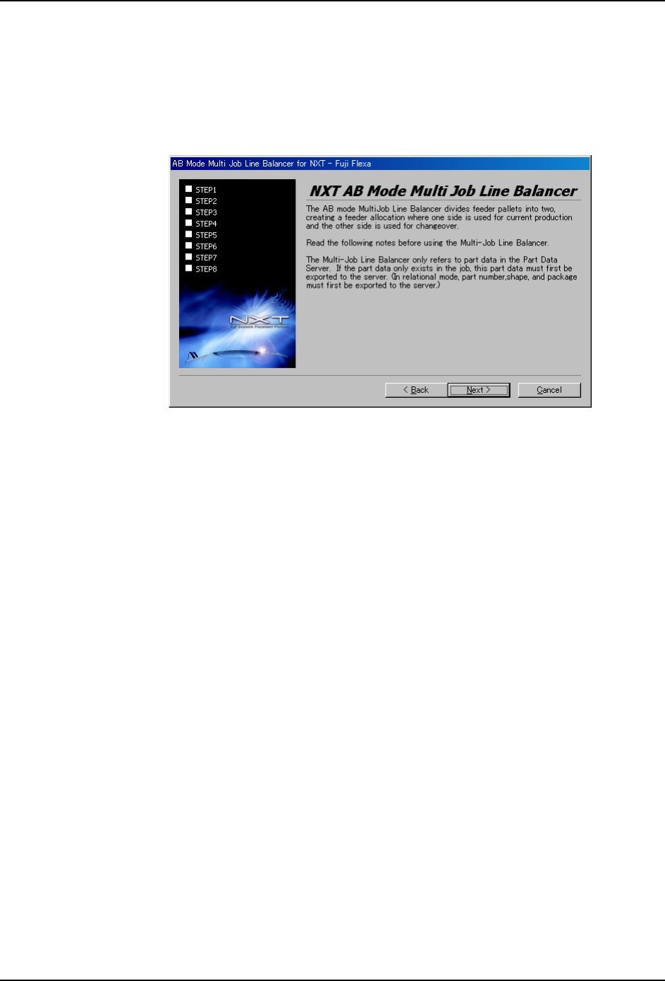 3. 在 AB Mode Multi Job Line Balancer 画面单击 [Next],显示 STEP1 画面。