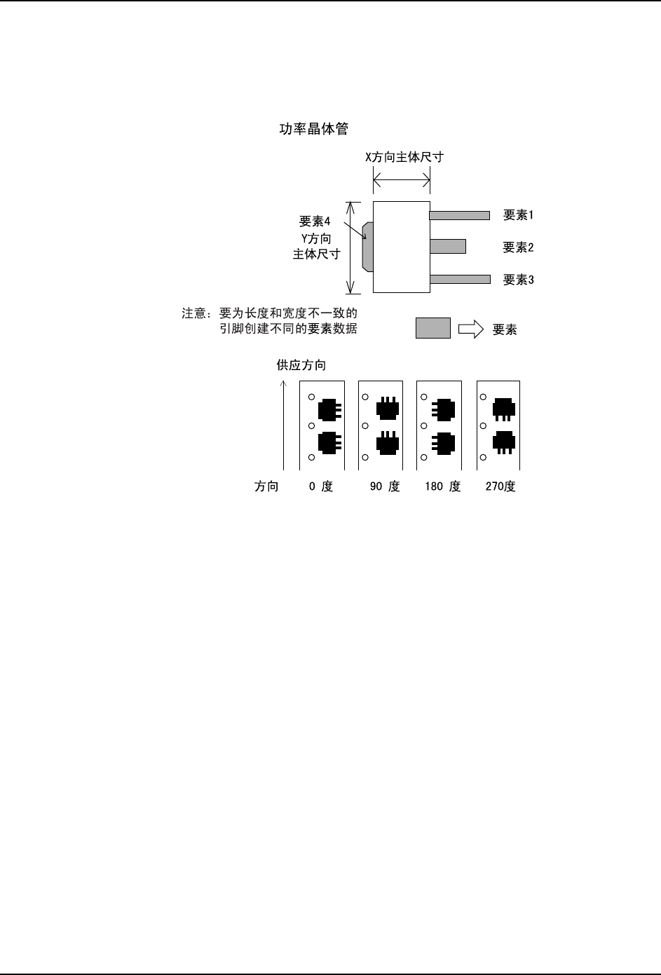 PRG-NXTS-004S0 3. 元件数据 NXT 系列 编程手册 209 VT 70 (75) 功率晶体管处理 必须在元件数据 中输入元件的主体 尺寸和 Element Information。另外, 对于长度和宽度 不 同的引脚,定义 不用的要素。VT70 时,元 件基准点是元件主体 中心,VT75 时,元件基准 点 是元件中心。如果元件上方的引 脚的切口较大,必要时设定为 [ 不进行影像处理 ]。 NXTPRG019S