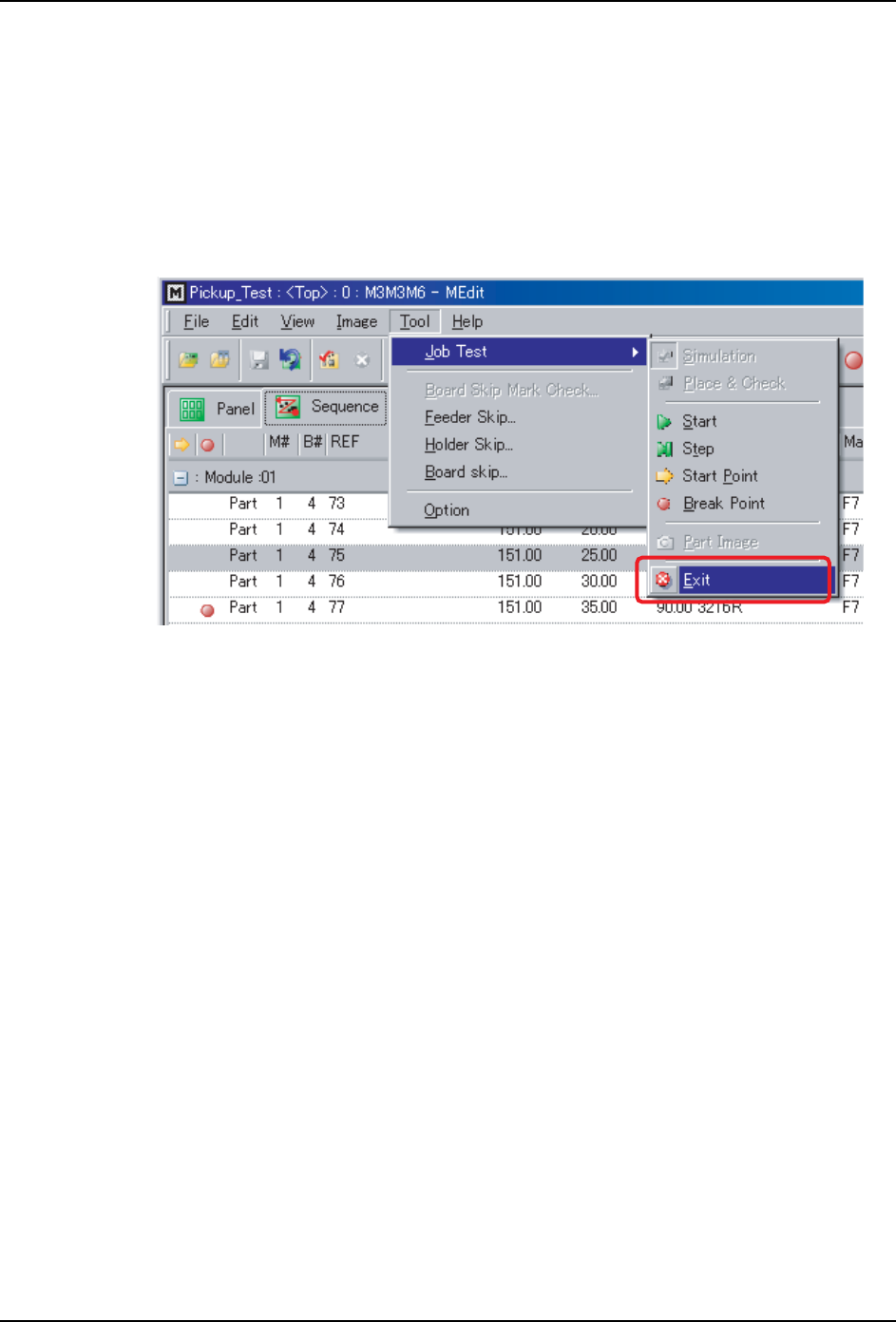 16.所有贴装和检查测试都完成后,从 [Tool] 菜单中选择 [Job Test]-[Exit]。