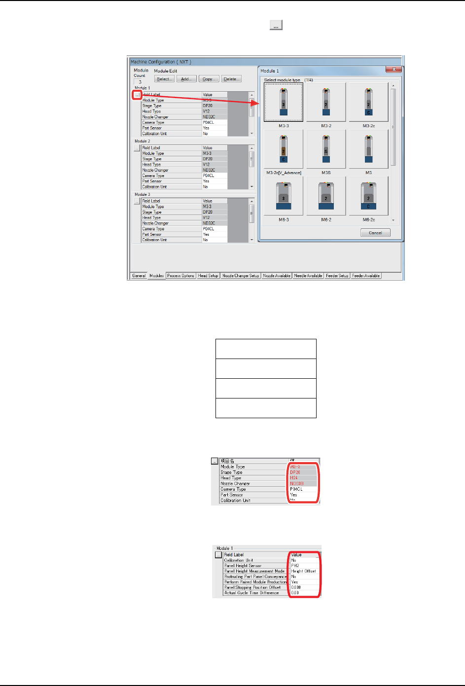 4. 设定模组配置。各模组数据中点击左侧的 [ ] 键,请从对话框选择工作模组类型、头