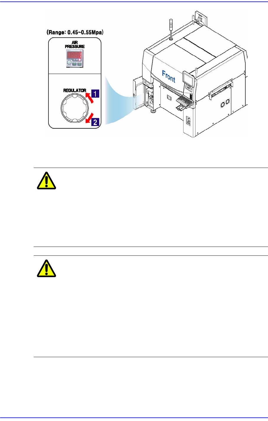 주 의 만약 공압이 0.45~0.55 Mpa 의 범위를 벗어나면, 부품의 흡장착