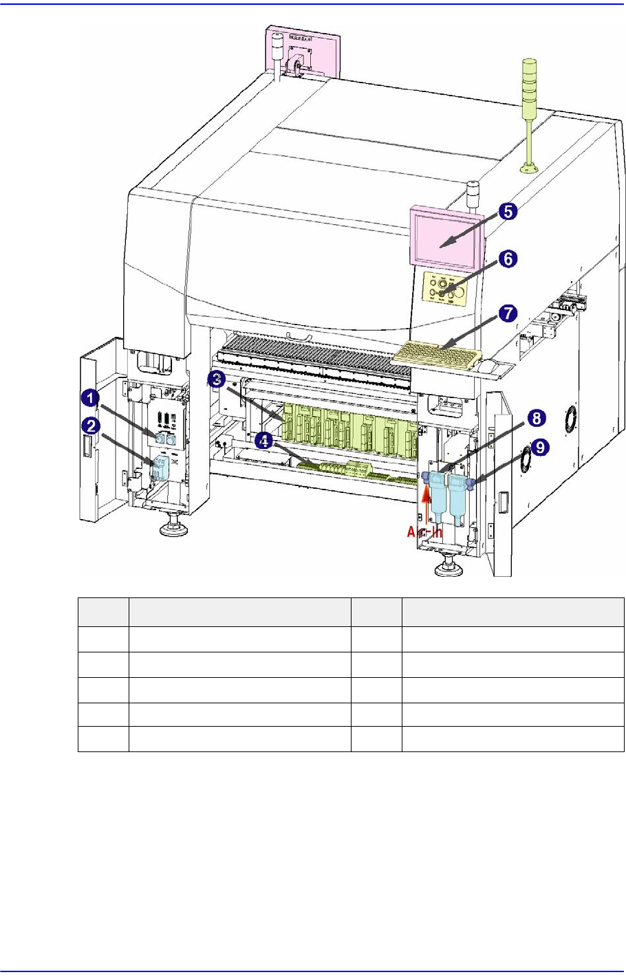 3-1 장비의 명칭 및 구성 제 3 장 . 장비의 명칭 및 구 성 3.1. 장비의 외관 및 명칭 그림 3.1 장비의 외관 No. Name No. Name 1 시그널 라이트 7 전면 조작패널 2 안전커버 (Door) 8 티칭박스 3 피더베이스 9 키보드 4 압력 게이지 10 마우스 5 압력조절기 (Regulator) 11 Safeguard Overrides 키 스위치 6 전면 LCD 모니터 1…