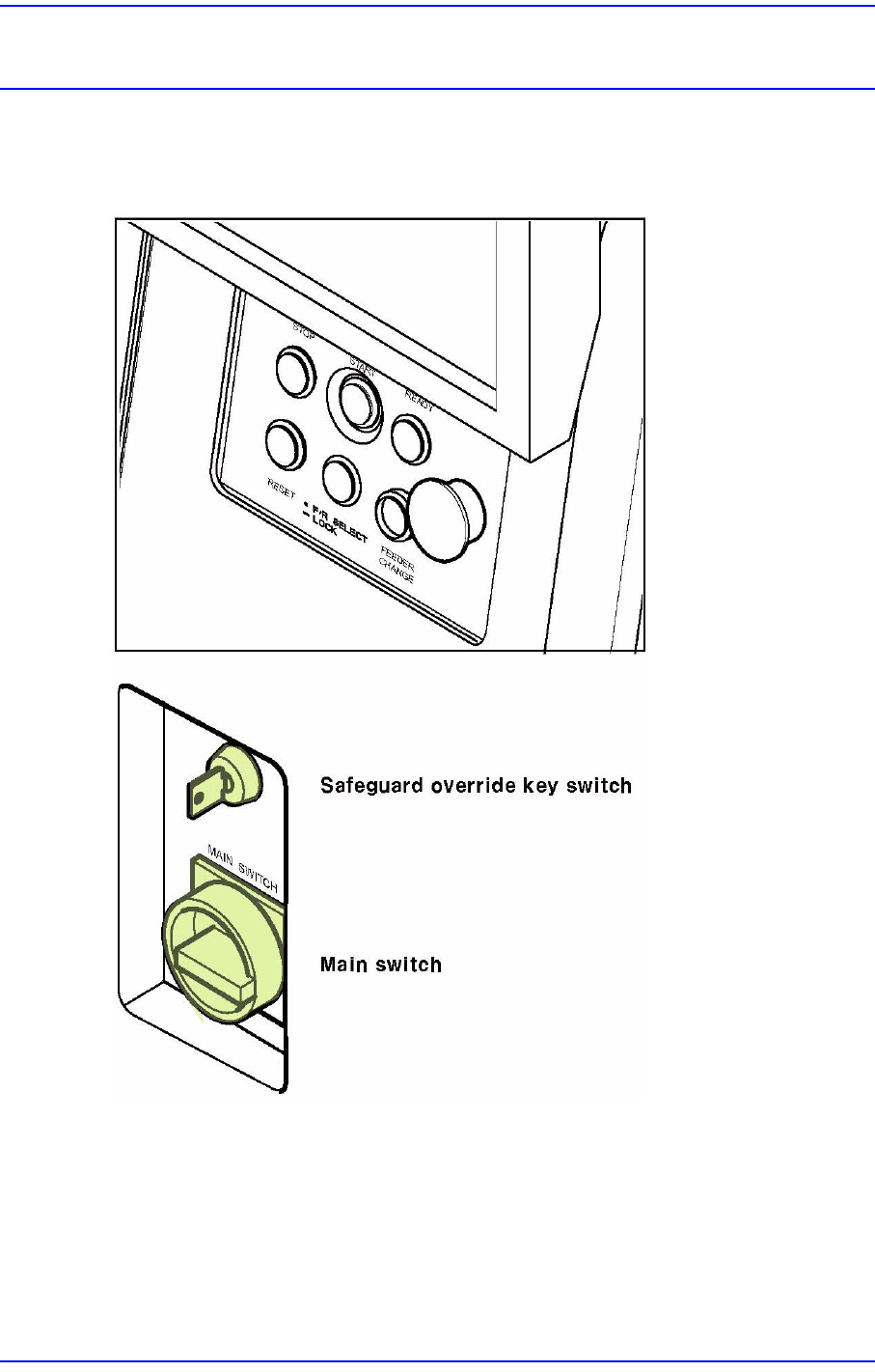 위 험 Safeguard override 키 스위치의 사용은 반드시 지정된 관리 책