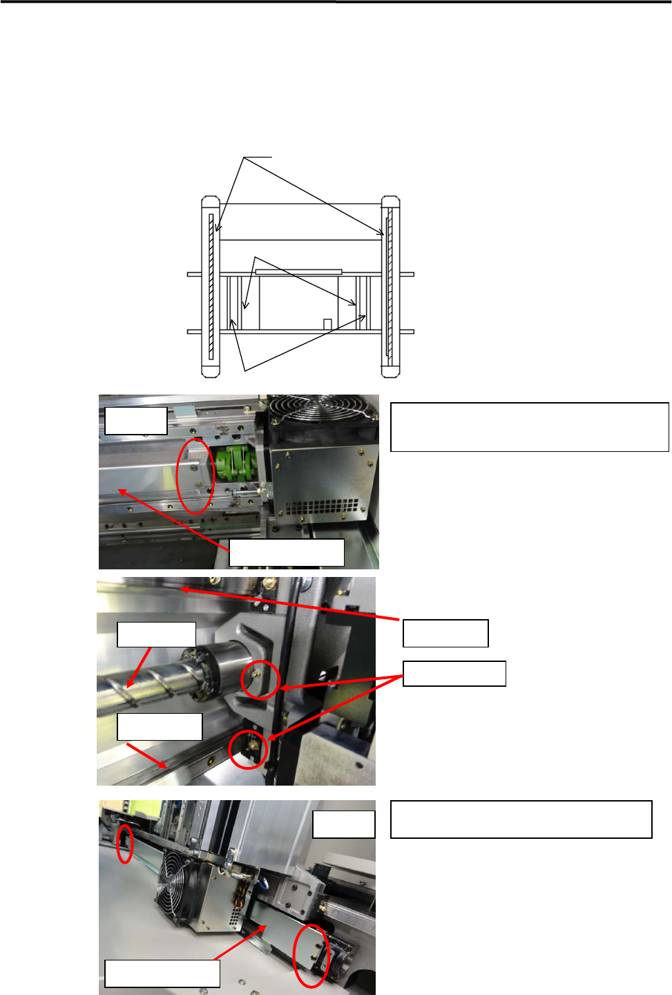 3 Mechanical Section 3-24 ■ Lubrication Points for X/Y-axis, Convey or, Feeder bank plates X and Y axis Ball Screw are covered by pl ates (Cove r Pl ate), the cover has to be removed to appl y grease on XY Ball Screw and…