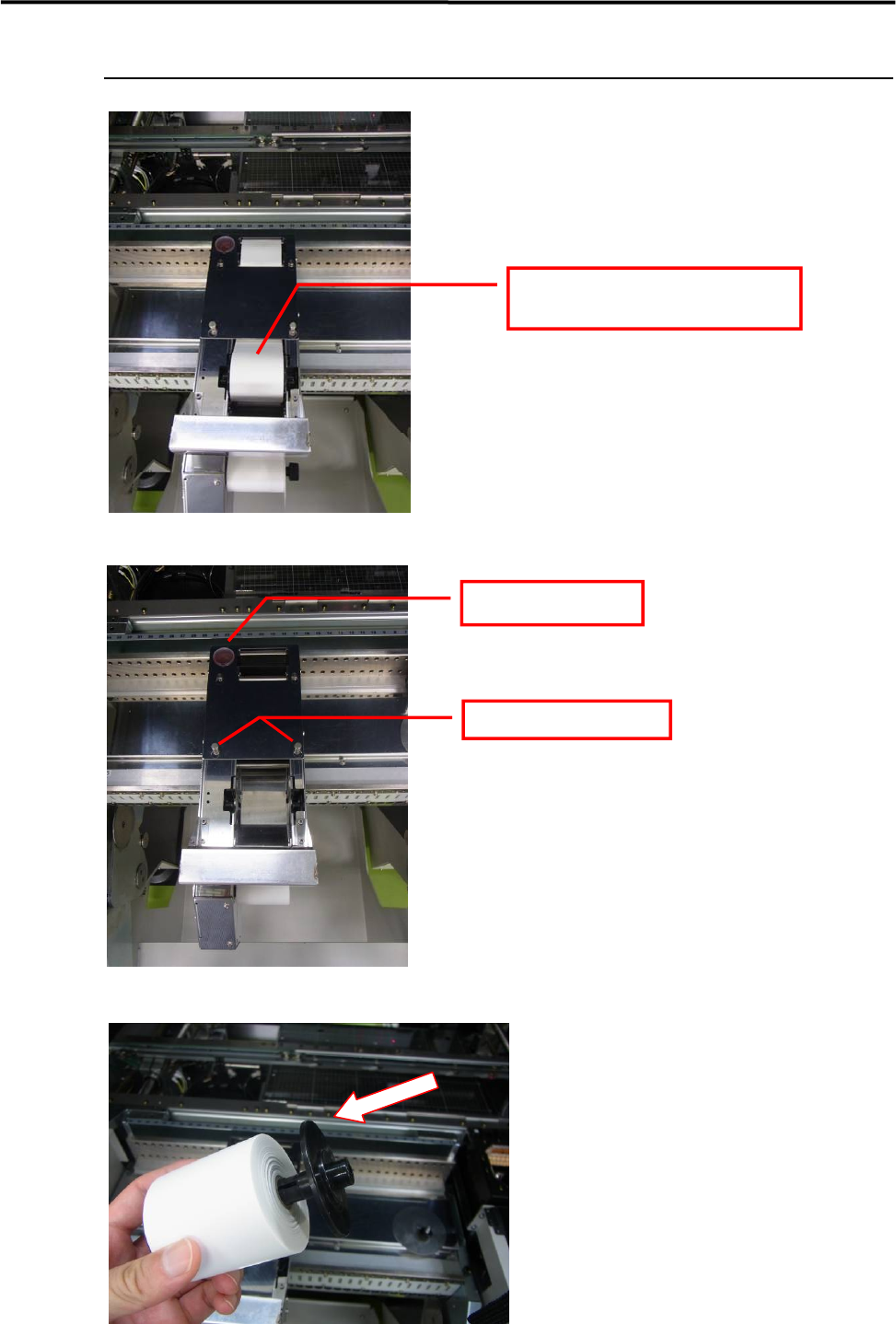 3 Mechanical Section 3-31 Installing the paper roll at the Dot Station ① Detach the cover. ② Insert the co re into the paper roll. Paper roll KM4-M9330-011 / ROLL PAPER Loosen these screws. Remove the cup.