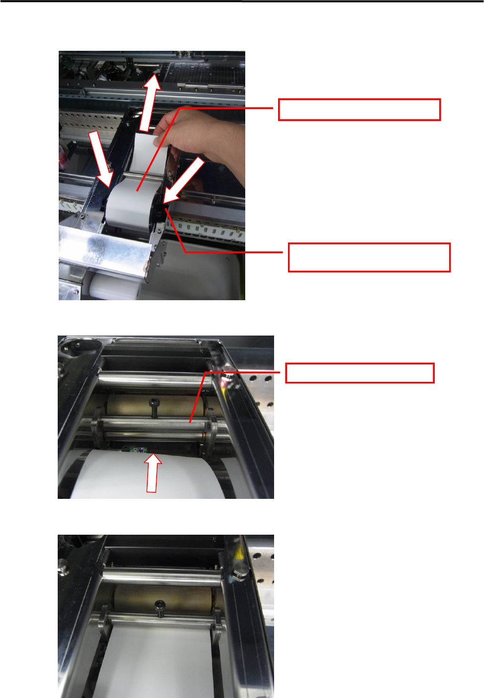 3 Mechanical Section 3-32 ③ Set the p aper roll in the Dot Station unit. Pass the paper beneath the top bar. Press in until a latching sound (click) is heard. Pass the paper between the bars.