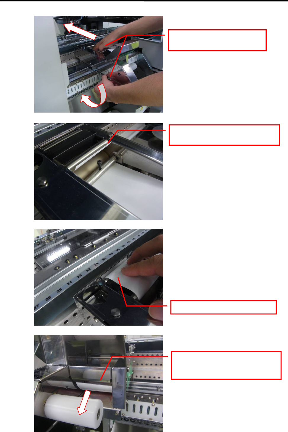Pass the paper beneath the top bar.