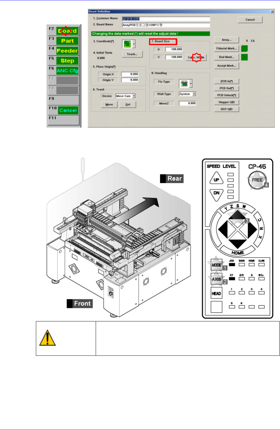 400mm in the Y direction of the conveyor in the ‘Y Edit Box’ of ‘7. Board Size’ area,