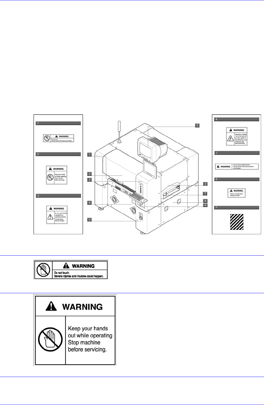 Figure 0-1. Safety labels attached on the front part of the machine