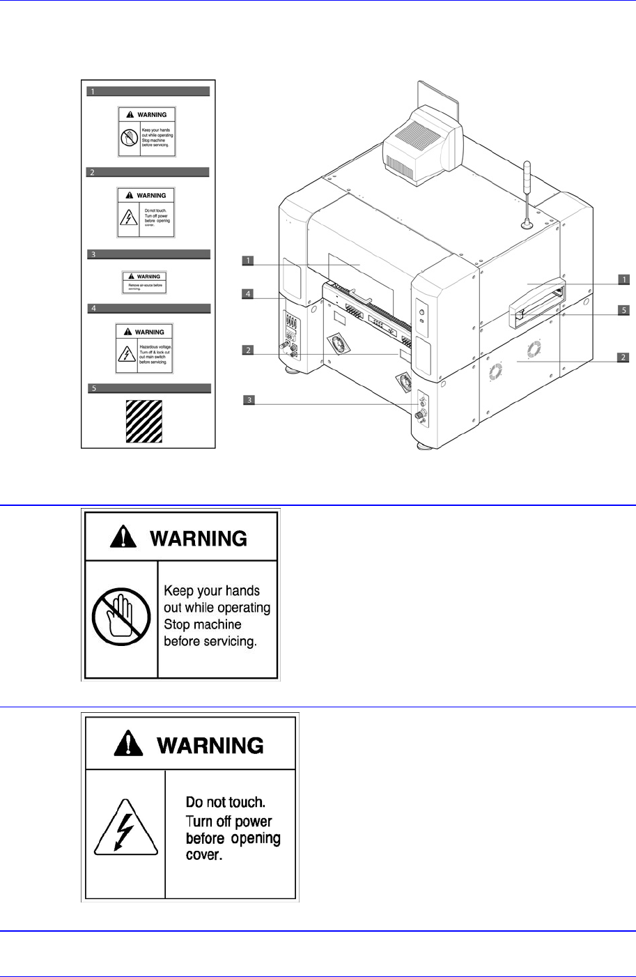 Figure 0-3. Safety labels attached on the internal part of the machine
