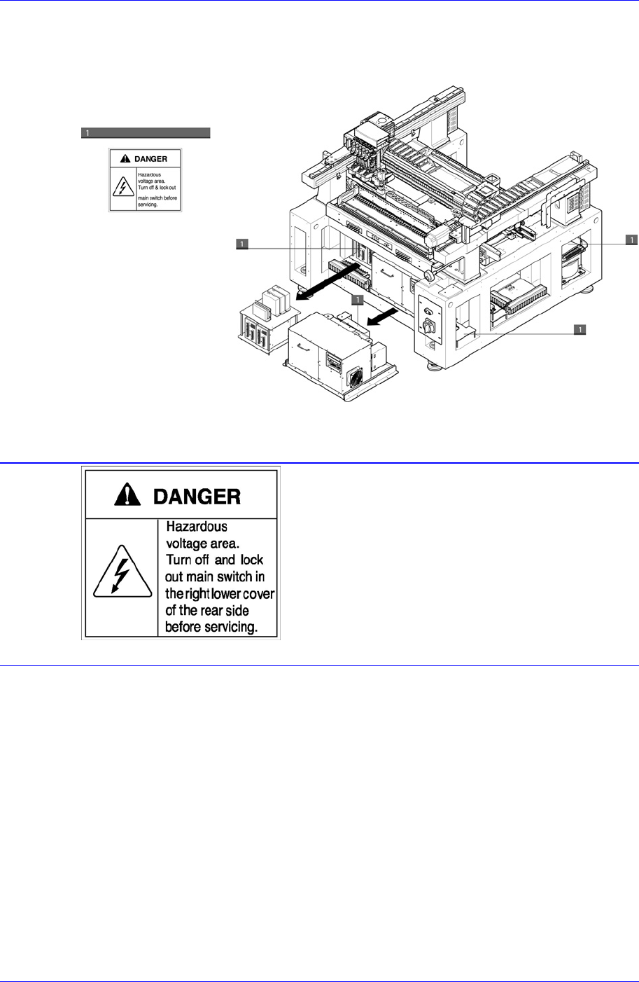 Figure 0-3. Safety labels attached on the internal part of the machine