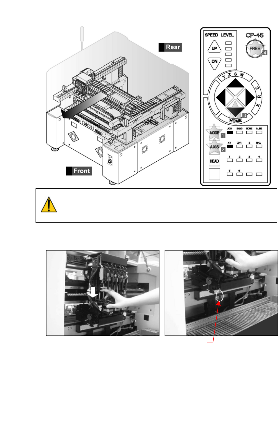 Samsung Component Placer CP45NEO Series Maintenance Refer ence  Operate the teaching box to move the Front X Frame Assembly to the rear side as far as possible so that front and rear head assem blies do not interfere wi…