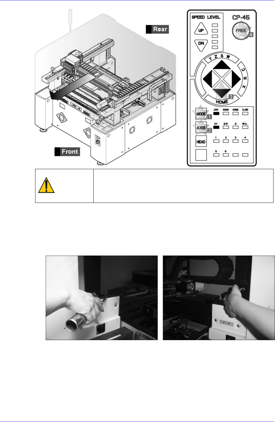 If the working space is insufficient, move the head assembly manually to the front