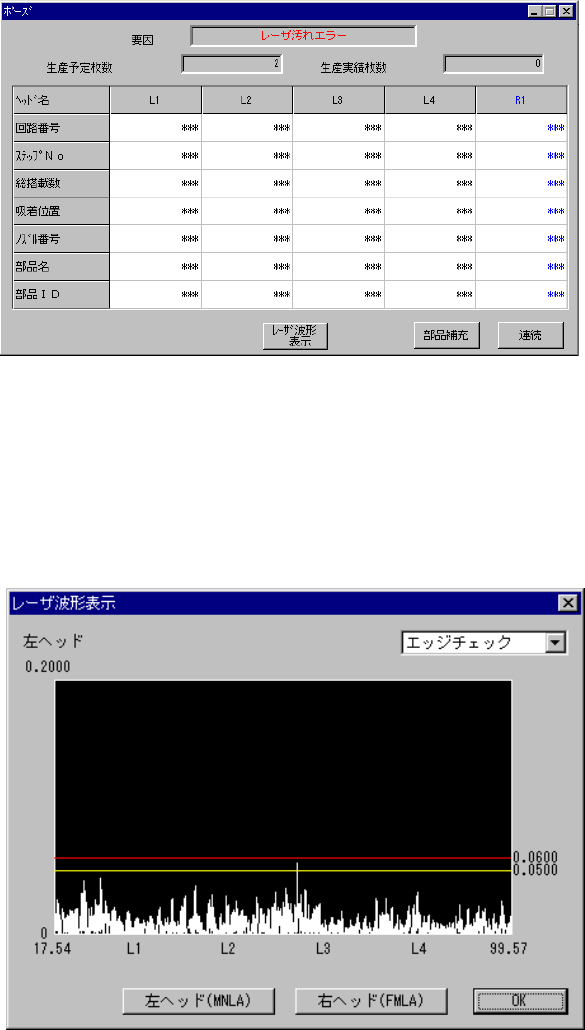 ※ <レーザ波形表示>ボタンは、一時停止画面およびリトライリスト画面に表示されます。<
