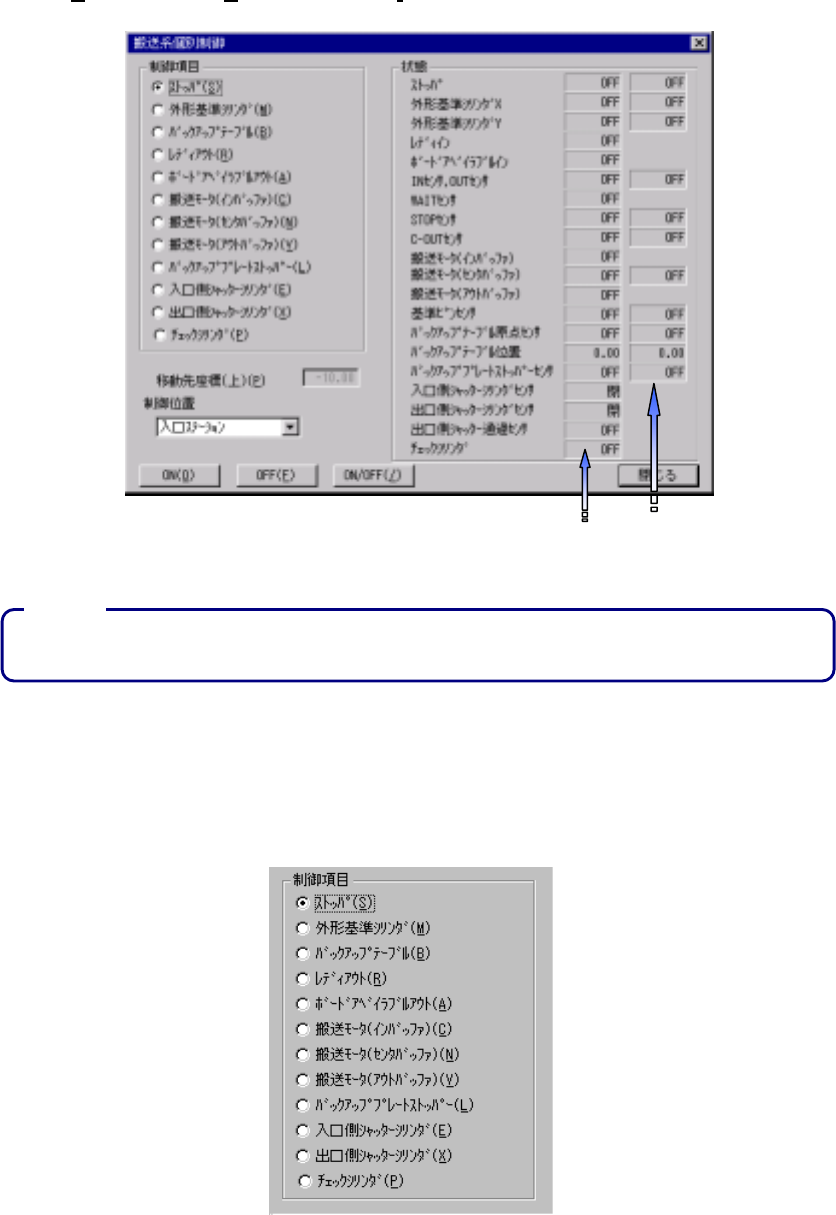 搬送系個別制御ダイアログ搬送系個別制御ダイアログ