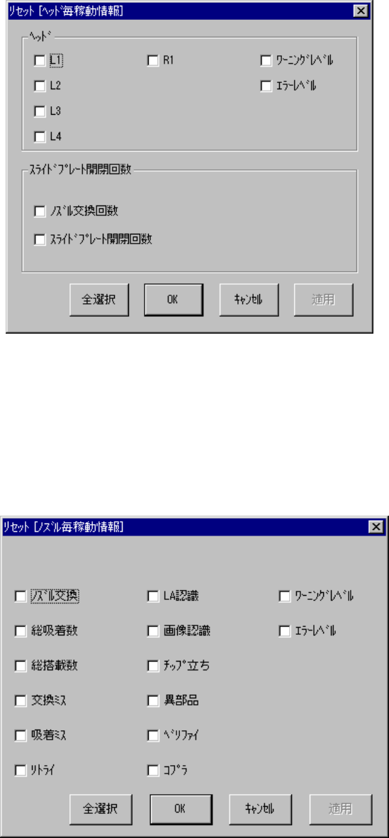 ヘッド毎稼動情報画面を表示している時にメニューバーの[ツール(T)/ リセット]を選択す