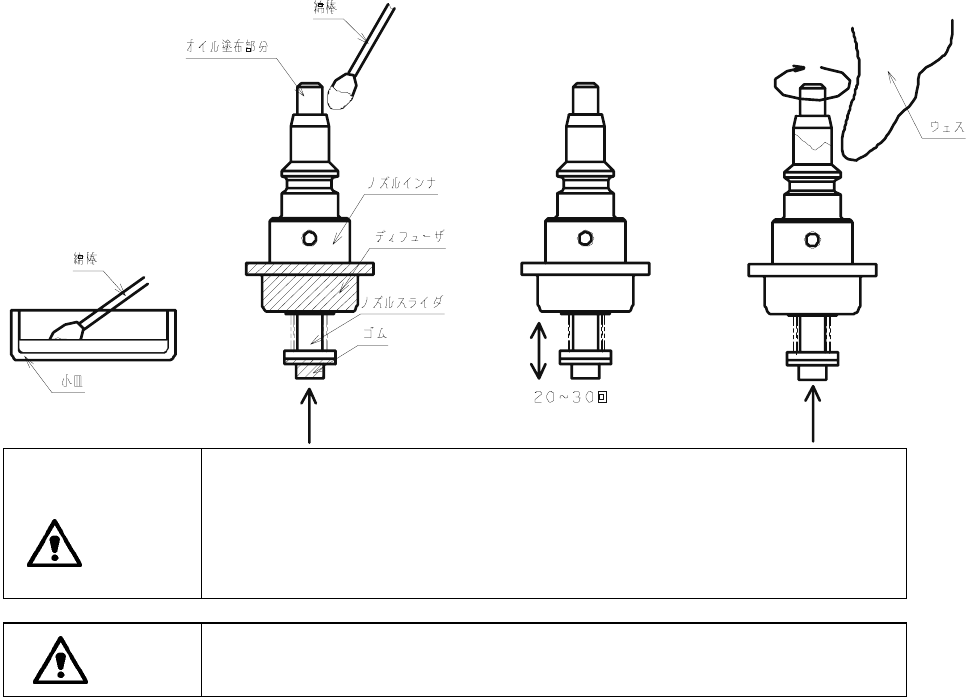なお、ノズルのディフューザとゴムの部分(下図斜線部)には、オイルが付着しないように注意して