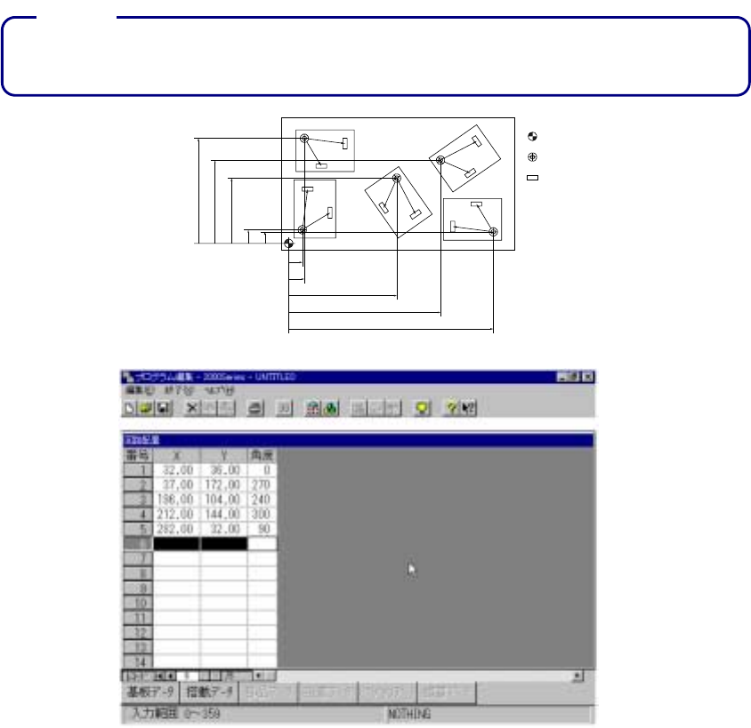 は基板の原点から各回路の原点までの寸法を入力します。各回路の角度は搭載データを作成