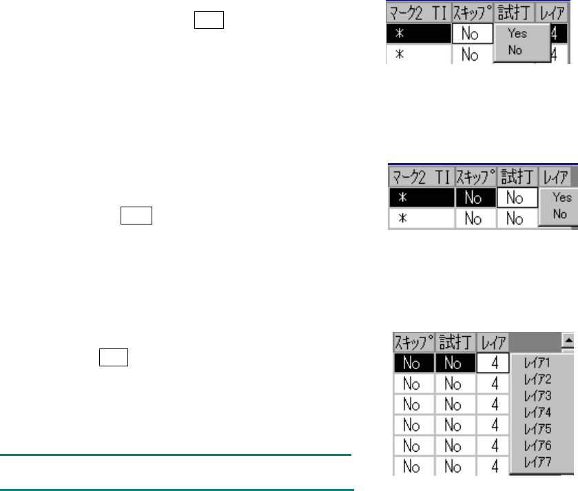 本項目で Yes と指定した搭載データのみが試打ちされます。