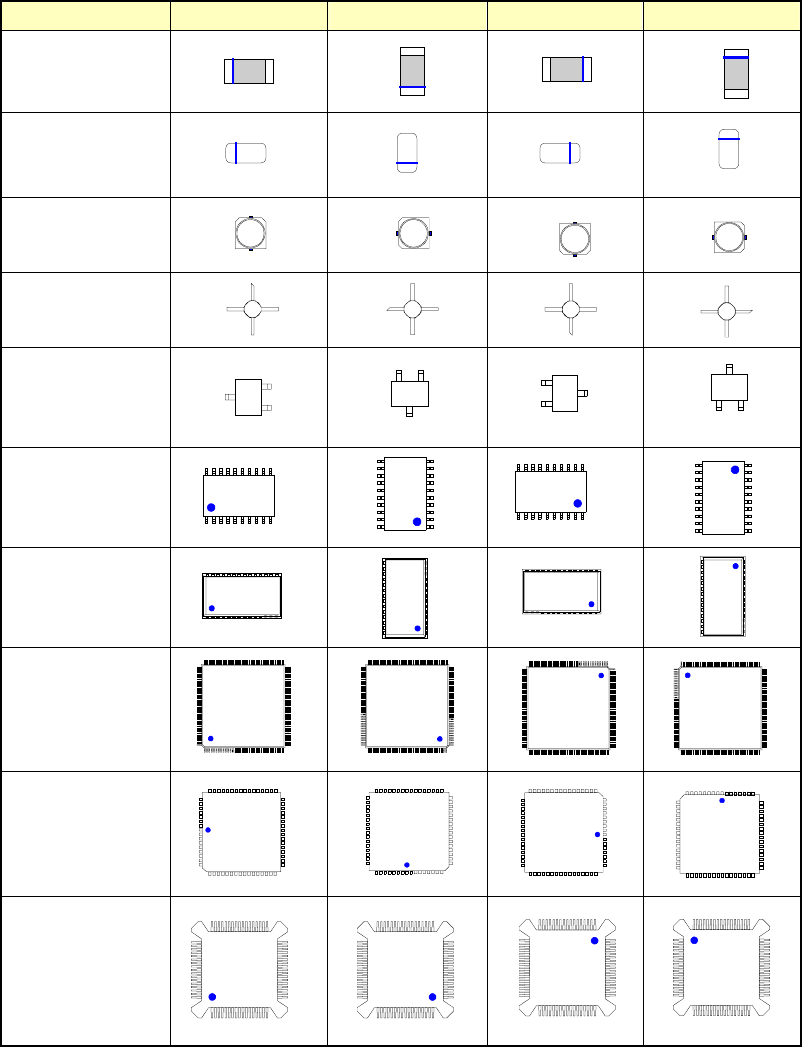 4 - 84 4-7-9. 部品供給角度定義 部品供給角度定義 部品供給角度定義 部品供給角度定義 部品供給角度 0 ° の定義 とそれぞれ の角度を表 4-7- 9 に図示しま す。極性を持 たない部品は、 0 ° と 180 ° 、 90 ° と 270 ° は、区別する必要はありません。 表 表 表 表 4-7- 9 部品供給角度定義 部品供給角度定義 部品供給角度定義 部品供給角度定義 部品種別 部品種別 部品種別 部品種別 0…