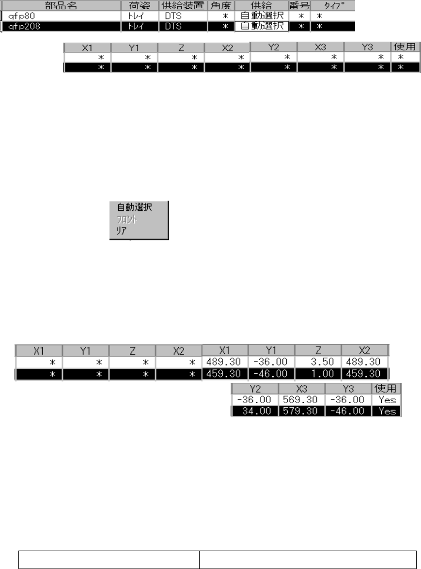 ● 荷姿、供給装置は部品データで設定された内容が表示されます。