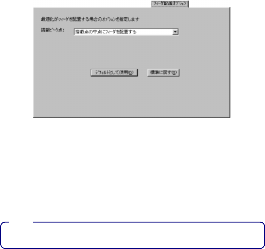 フィーダ配置オプションでは,最適化がフィーダを配置する場合のオプションを指定できます。