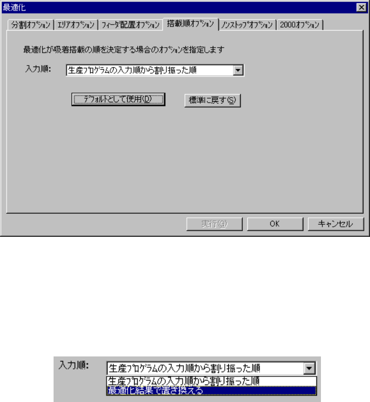 搭載順オプションでは,最適化が吸着搭載の順を決める場合のオプションを指定できます。