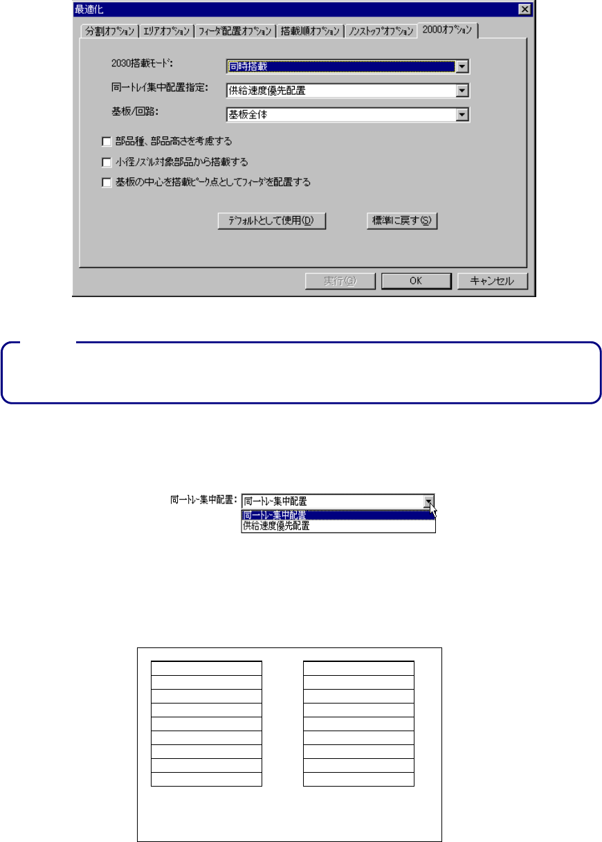 ◇ オプションがチェックされていない場合、フィーダ配置オプションの搭載ピーク点
