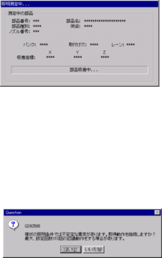 ビジョン認識検査中は以下のダイアログが表示されます。 検査を行っている部品内