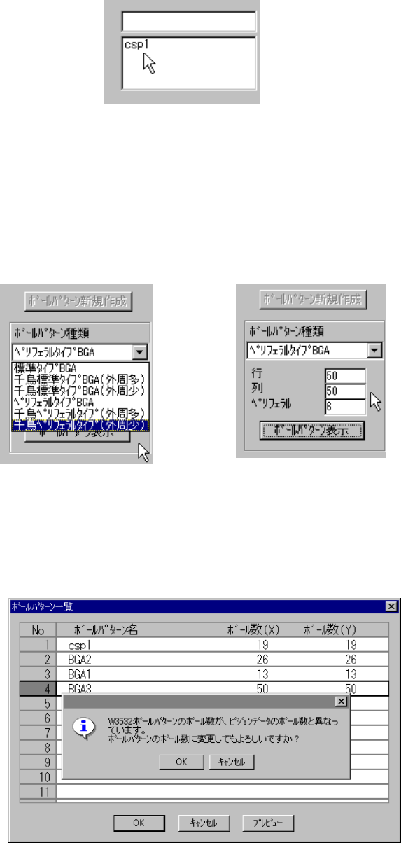 データベースの一覧呼出の操作と同じで、設定するボールパターンをダブルクリックする