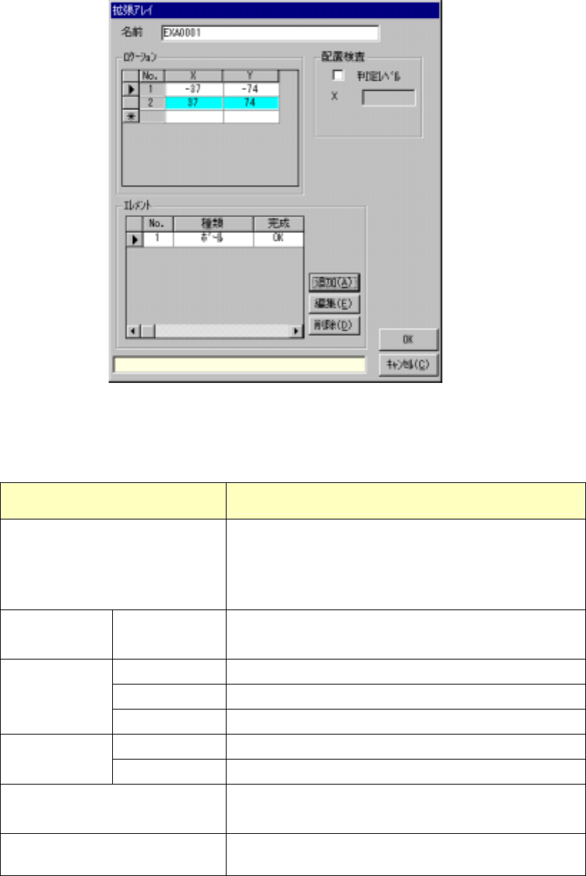エレメントグループ又は拡張アレイの「エレメント」を追加又は編集をクリックすると以下