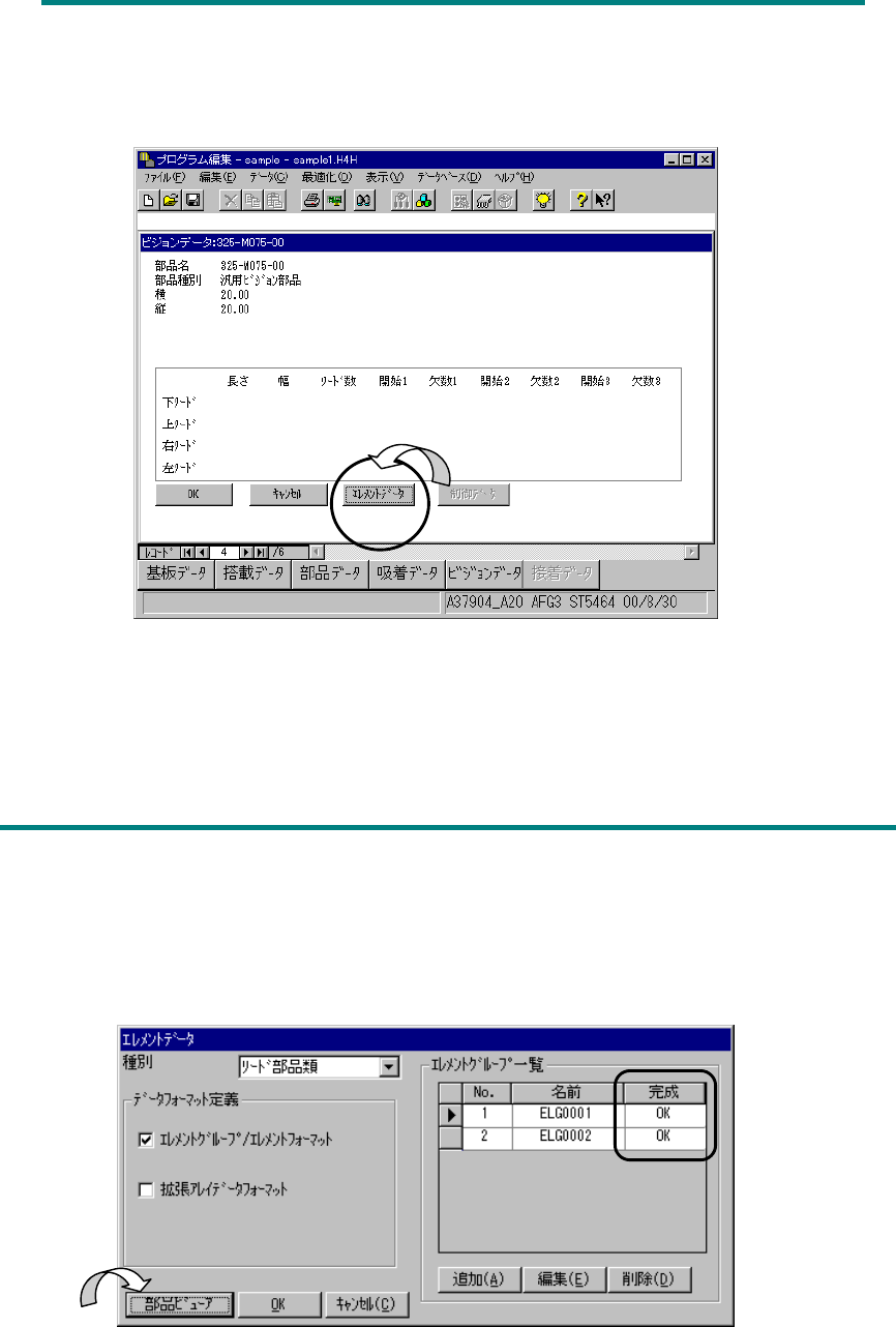 エレメントデータ画面で、エレメントグループデータが完成していることを確認してから、