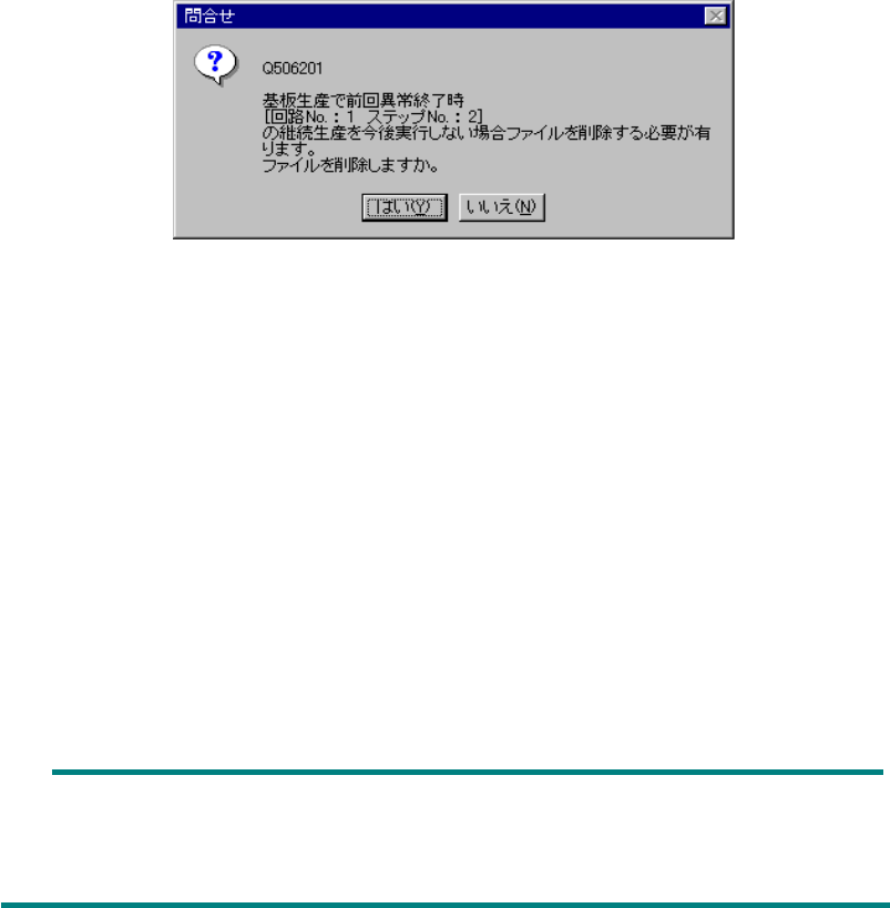 継続生産データ削除確認ダイアログ継続生産データ削除確認ダイアログ